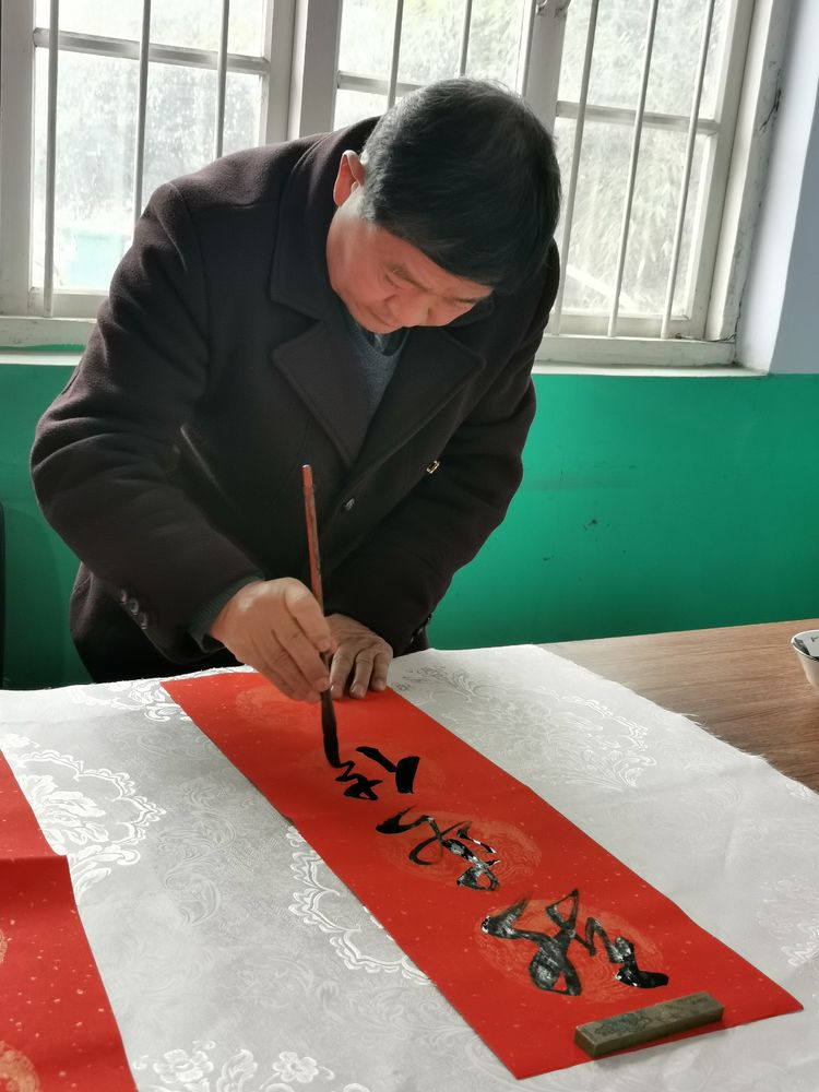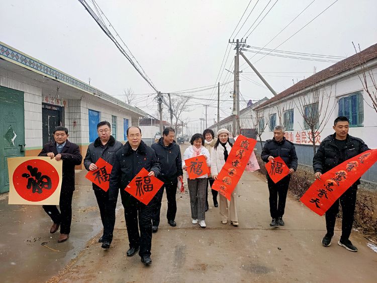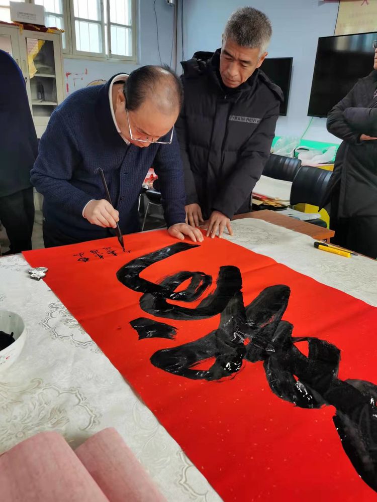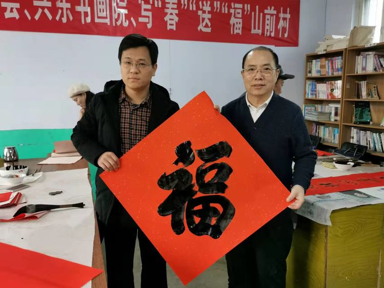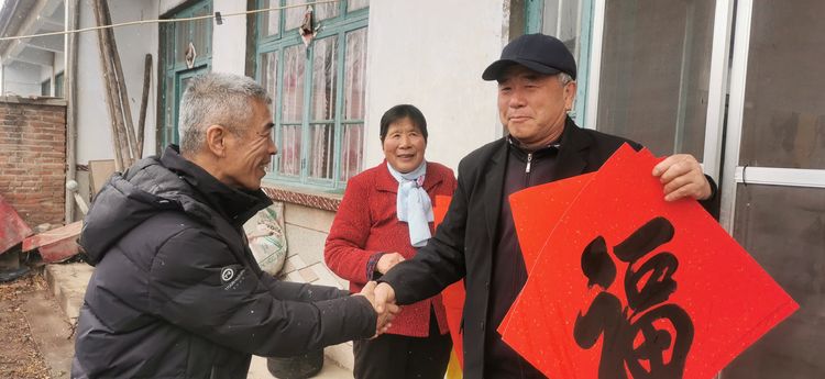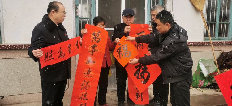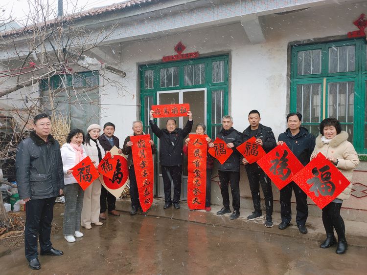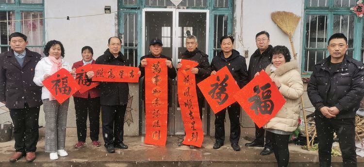 在瑞雪兆丰年的好兆头下,武法村会长和山前村第一驻村书记汤拥军、村支部书记袁邦旭携诸位书画家们祝郑公街道及山前村的老人们“福如东海、寿比南山”,并冒着纷飞的瑞雪把这份真诚的新年祝福与党和政府的关怀一起送到了部分山前村的村民家中。