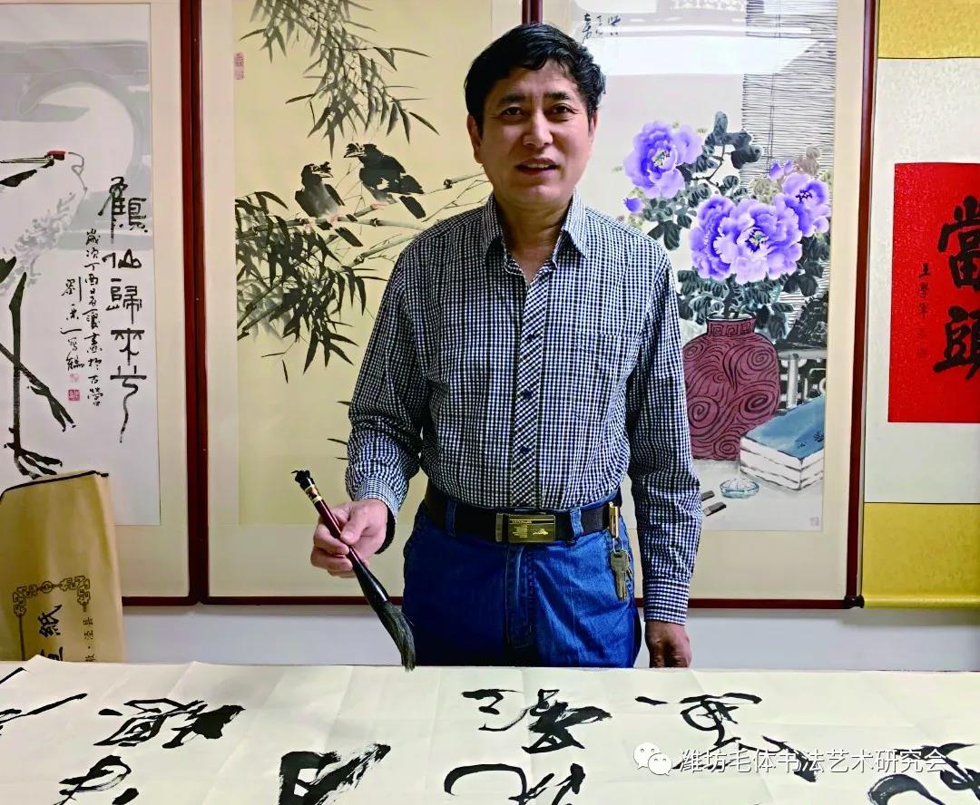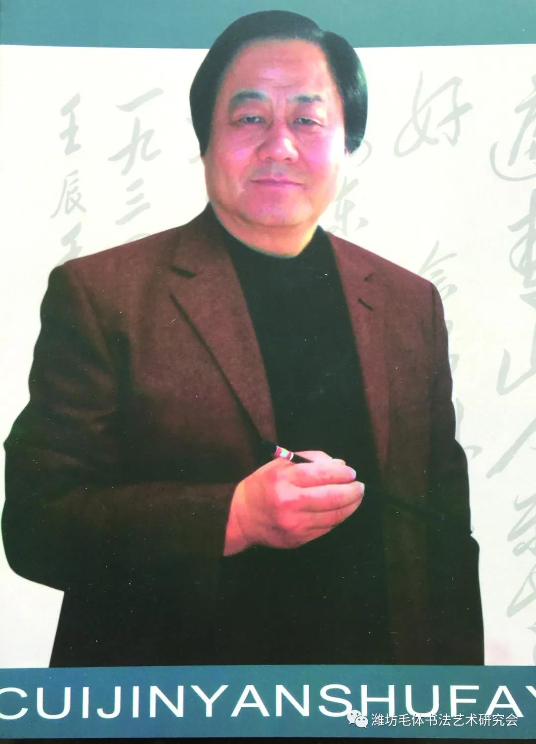 崔金言:大学文化,山东省潍坊市潍城区人,自小爱好书法,几十年如一日临习诸家碑帖,特别钟爱、临摹、研究毛泽东书法。现为中国毛体书法家协会副会长,中国毛体书法协会潍坊、青州两个红色书画创作基地主任,中国楹联学会会员,中国楹联书法艺委会委员,潍坊毛泽东书法艺术研究会名誉会长、潍坊兴东书画院名誉院长。
