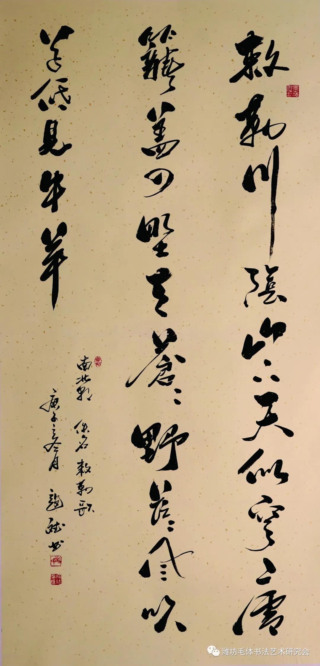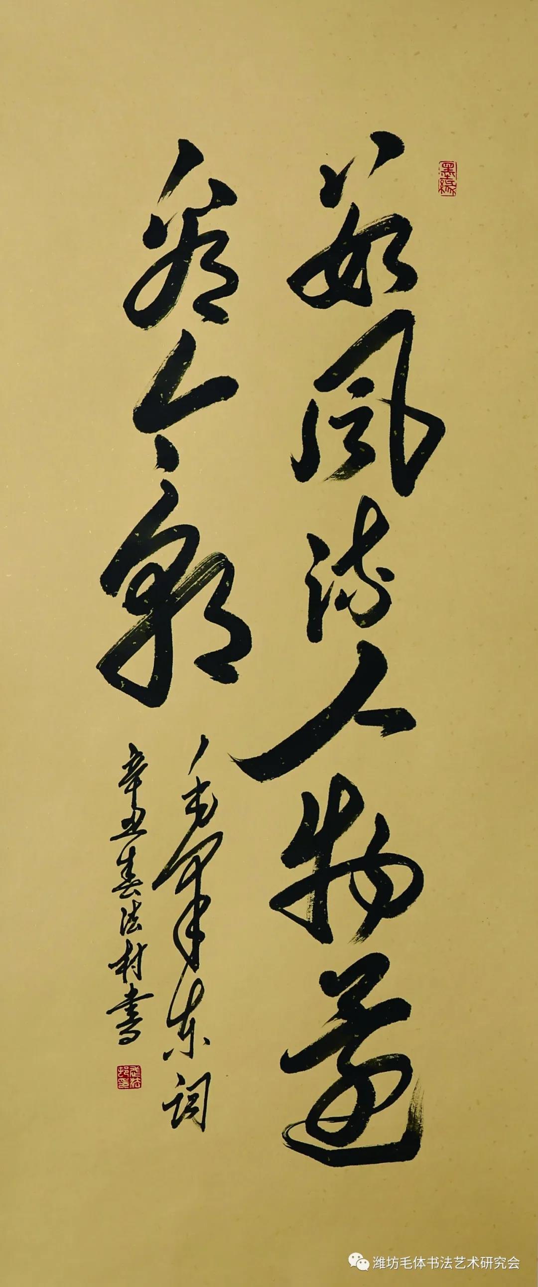 武法村:字村之、号龙山居士,山东省潍坊市人,1955年生,复退军人、中共党员、企业家、书法家。李苦禅先生再传弟子,国际金奖获得者,现任国际书画艺术联盟副主席潍坊地区主席,中国毛体书法家协会副会长,潍坊毛泽东书法艺术研究会会长、法人、党支部书记,兴东书画院院长。