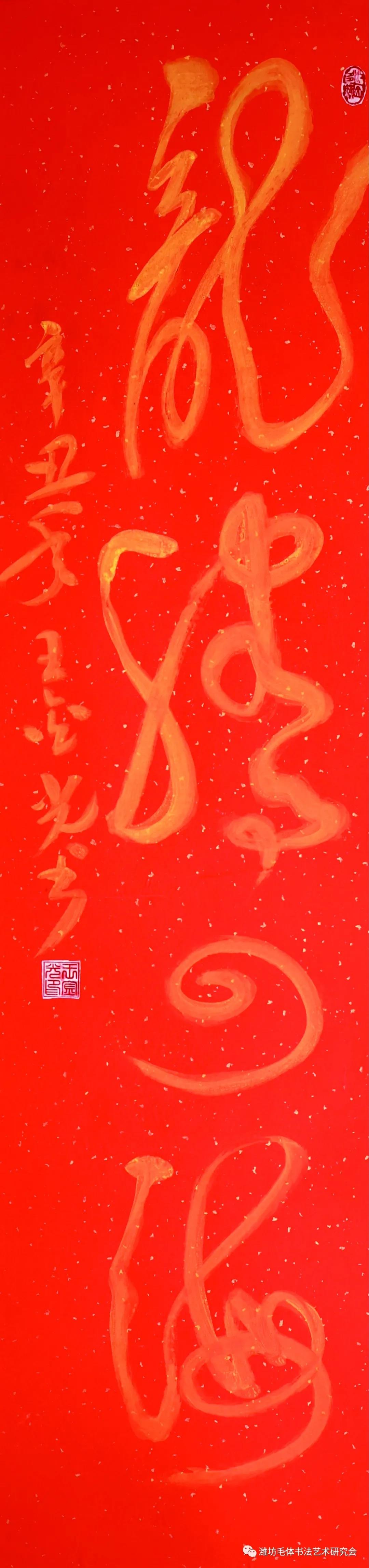 王金光:笔名孺子牛,男,1973年生。籍贯山东诸城,自幼受父辈熏陶酷爱书法艺术。上学期间积极参加书法相关的竞赛,并获得过多次奖项。现为潍坊市毛泽东书法艺术研究会、潍坊兴东书画院副秘书长。
