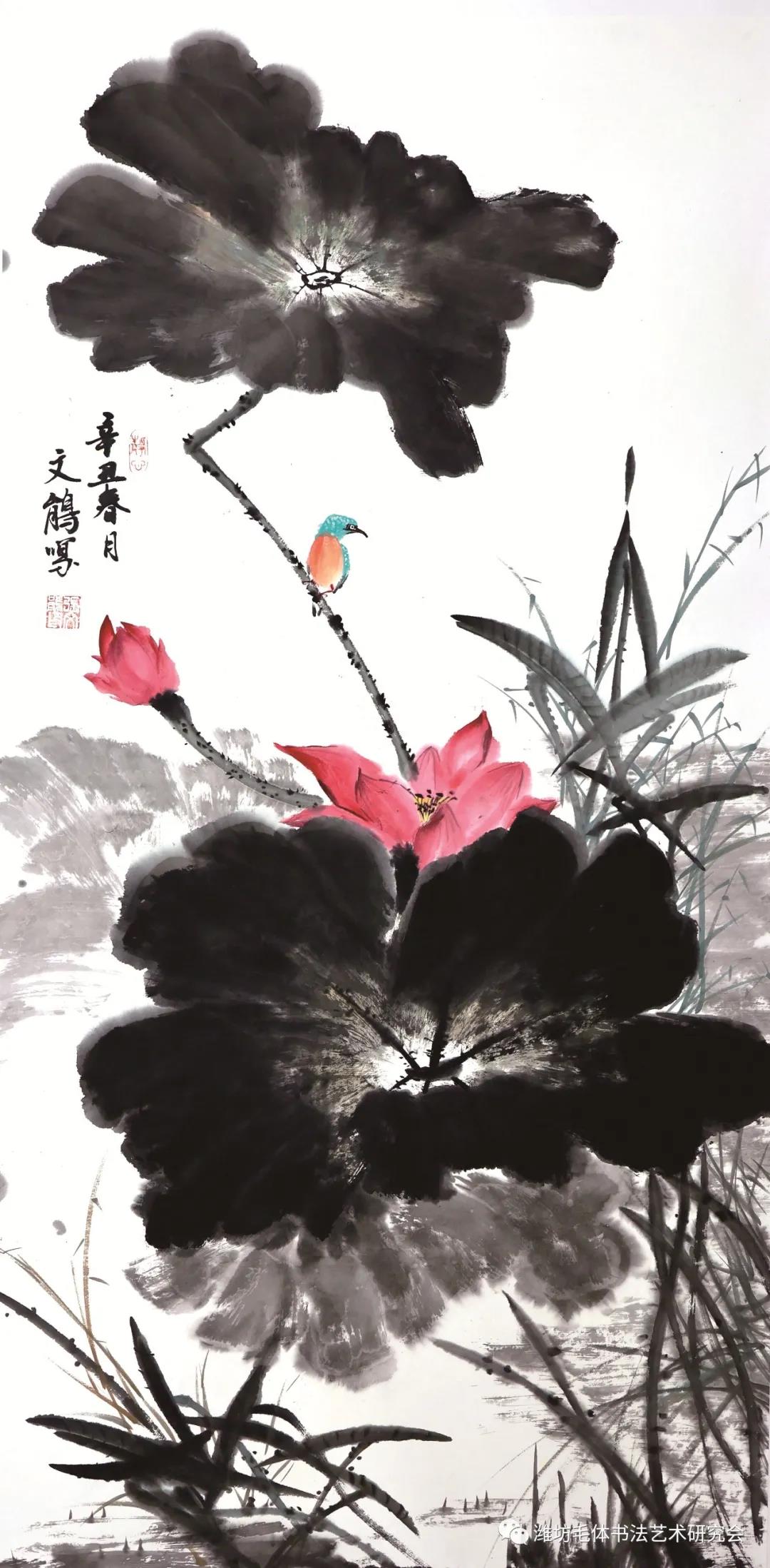 潘磊:斋号三生石,1975年生于潍坊,毕业于山东艺术学院美术系,师承南派花鸟大师张文昌先生,现为潍坊美协会员,潍坊市毛泽东书法艺术研究会理事、潍坊兴东书画院理事。艺术理念:绘画是磨炼人性的一个好的方法,在绘画的过程中或者在学习绘画的过程中慢慢学会心静和做人的道理。