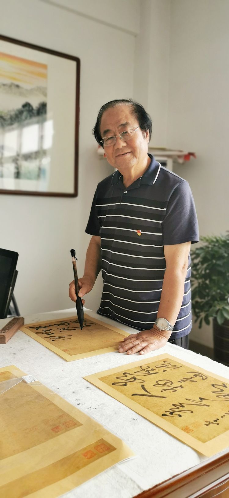 中国毛体书法家协会理事、潍坊毛体协会、潍坊兴东书画院艺术顾问王学川同志在创作国画作品