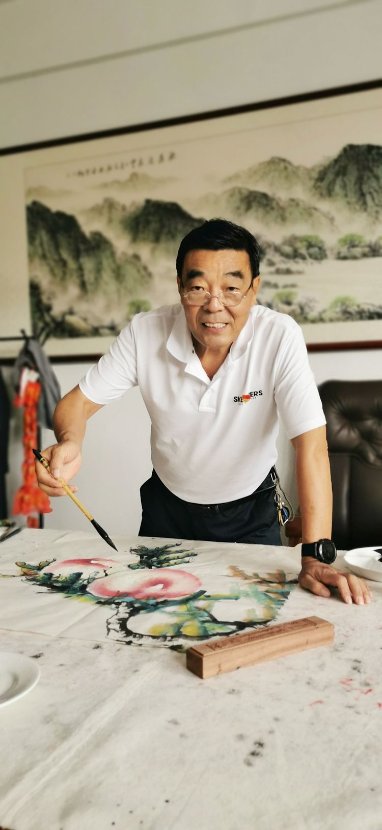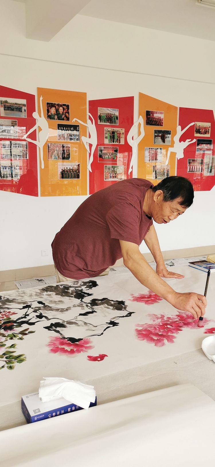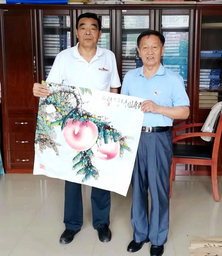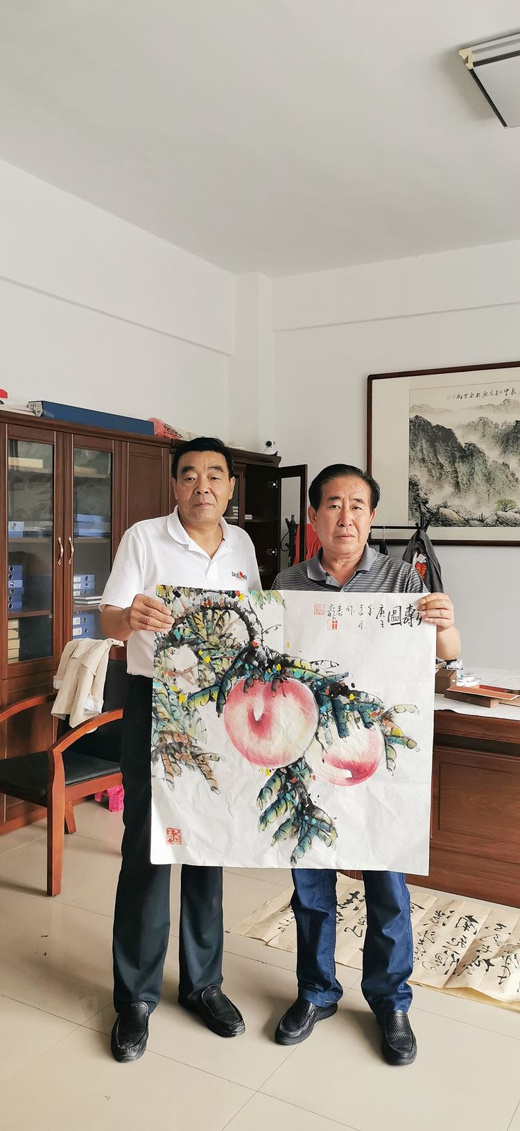 潍坊毛体协会、潍坊兴东书画院艺术顾问王寿龙同志在创作国画《大寿图》