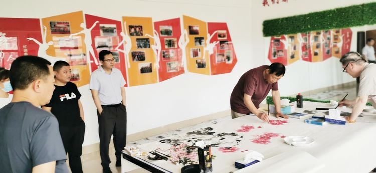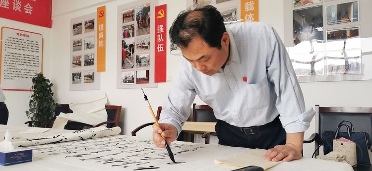 三,座谈会结束后大家进行了书画笔会活动,创作出了一批优秀的作品,以手中的画笔表达了对党的无限热爱和深情感恩。