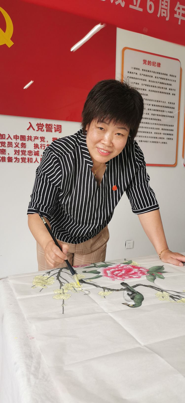 潍坊毛体协会、潍坊兴东书画院常务理事考玉梅同志在创作工笔国画作品