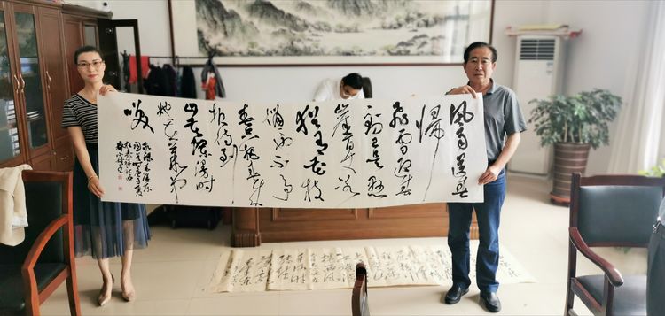 潍坊毛体书法协会副会长、潍坊兴东书画院副院长孙建伟同志在创作书法作品