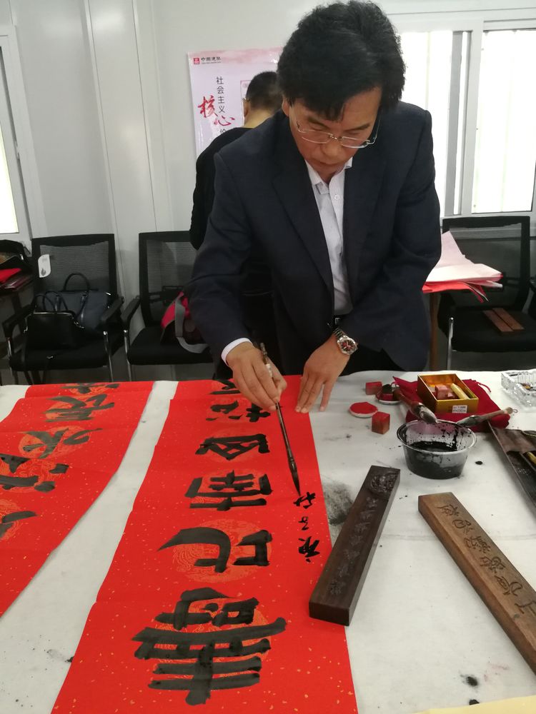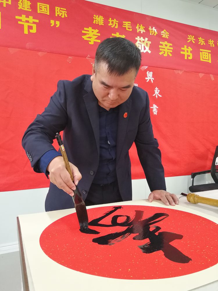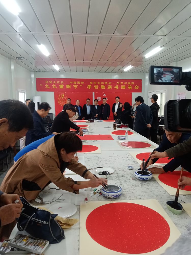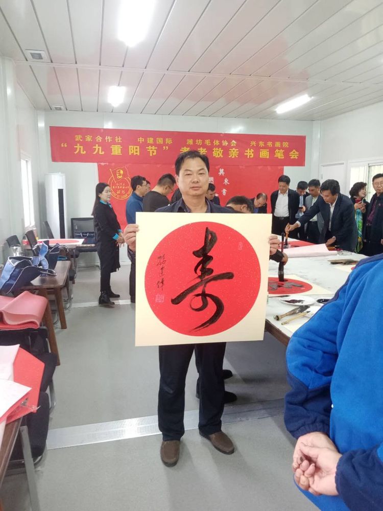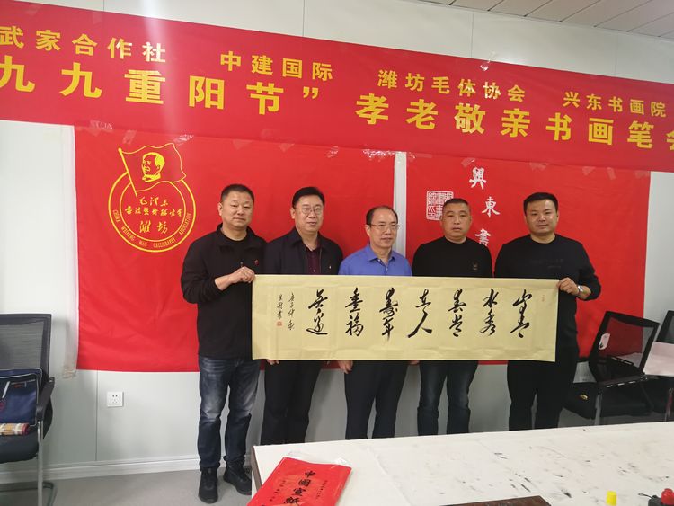 在潍坊市委宣传部、市民政局的正确领导下,10月21日,由奎文区二十里堡街道武家经济合作社主办,潍坊毛泽东书法艺术研究会承办,中建国际投资集团支持的潍坊毛体协会、潍坊兴东书画院授牌仪式暨奎文区二十里堡街道武家经济合作社尊老敬老笔会活动圆满举行。