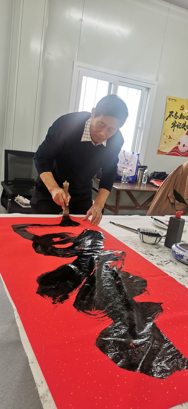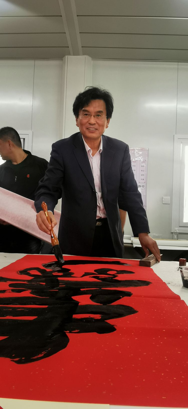 书法家谭志刚同志在创作中