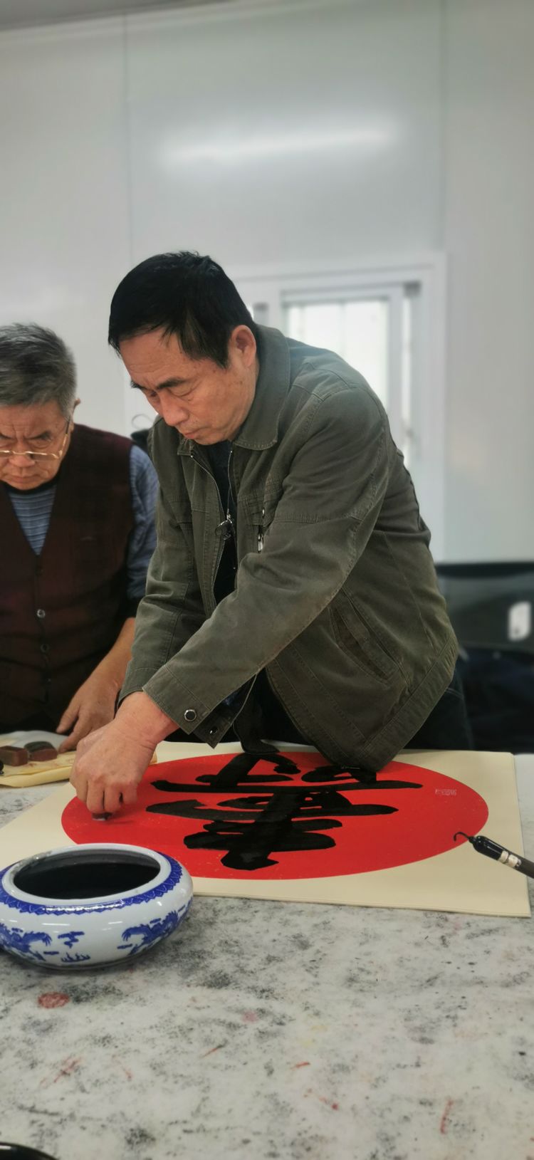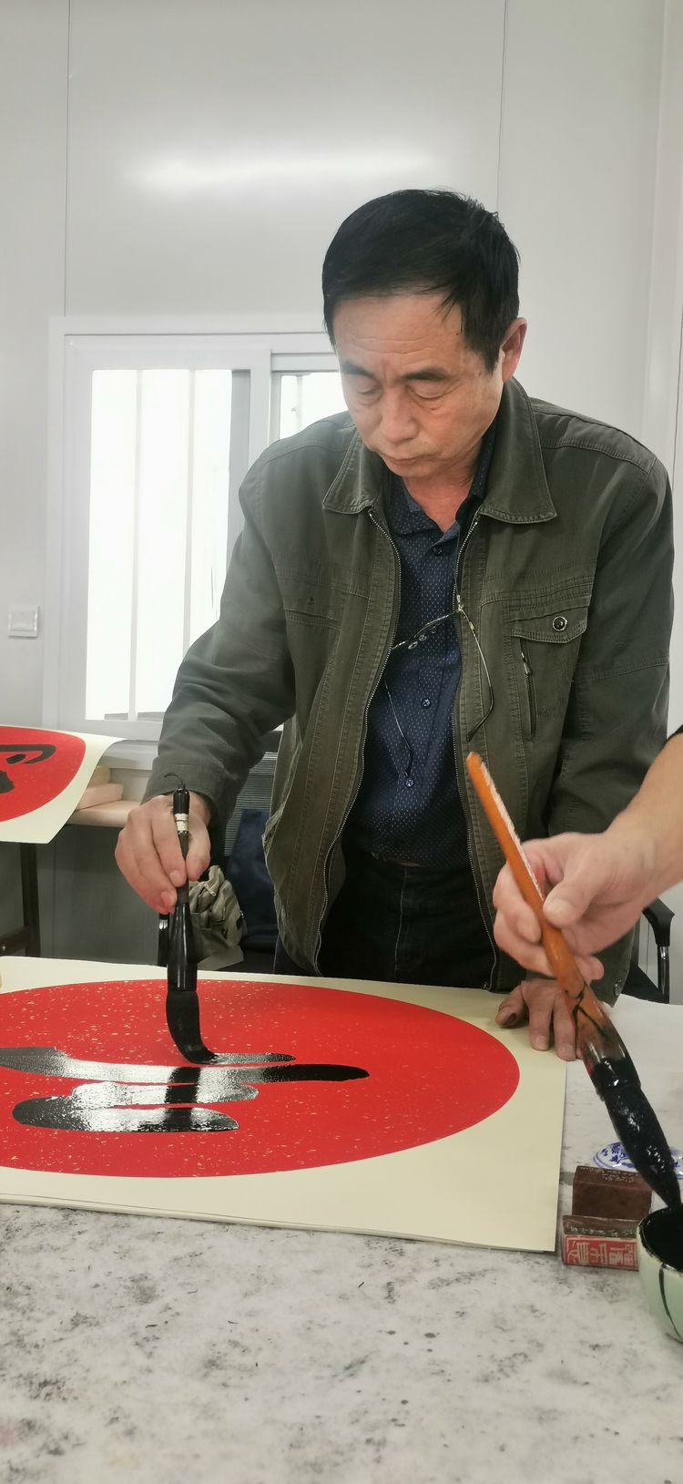 书法家孙宣华同志在创作中