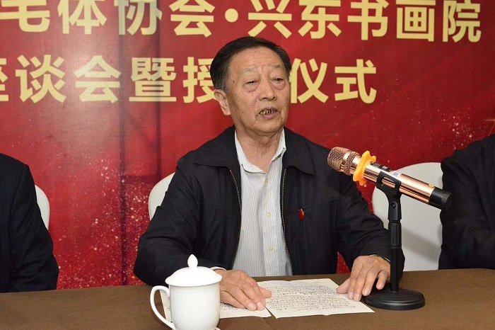 第二项:原潍坊市委常委秘书长、潍坊毛体协会名誉会长、兴东书画院名誉院长李光信同志致辞。