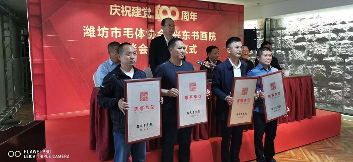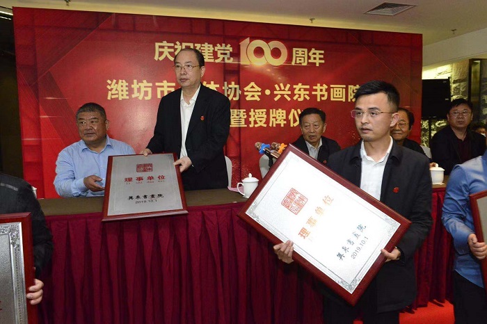 三、潍坊毛体协会、兴东书画院为新增名誉会长单位、理事单位授牌仪式;