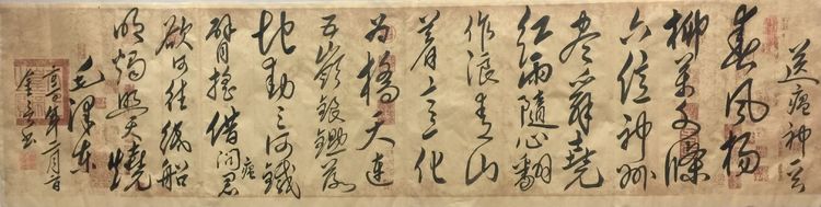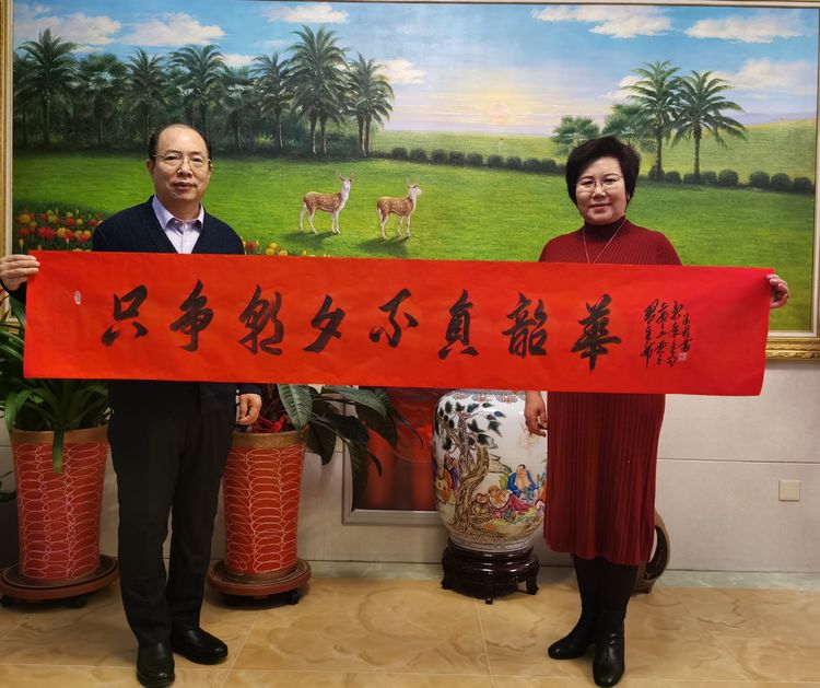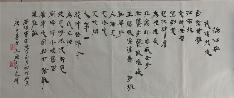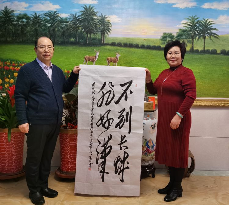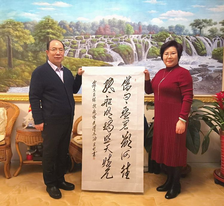 潍坊毛体协会、潍坊兴东书画院顾问孙腊梅夫妇共同作词一阙,其全文曰: