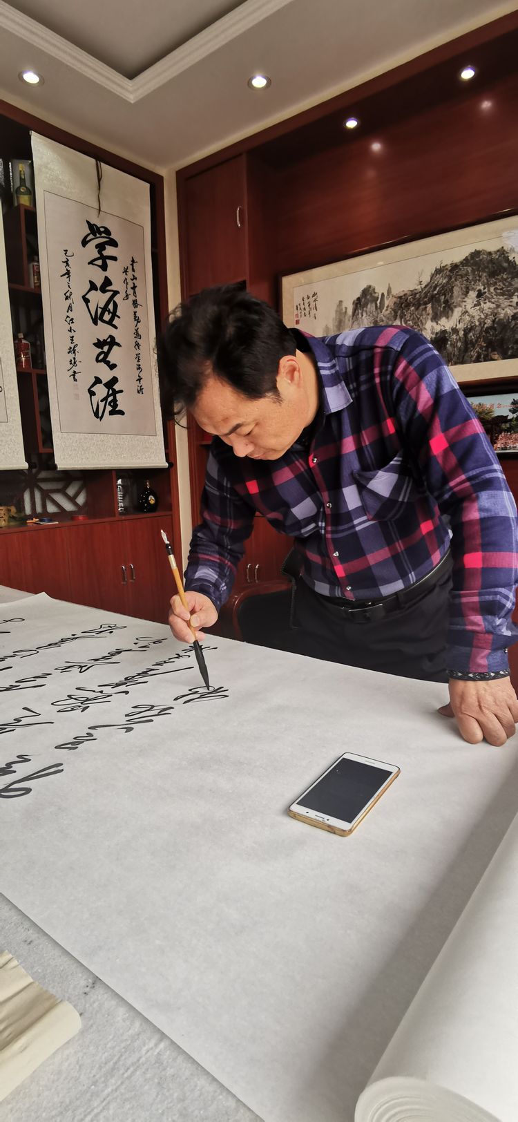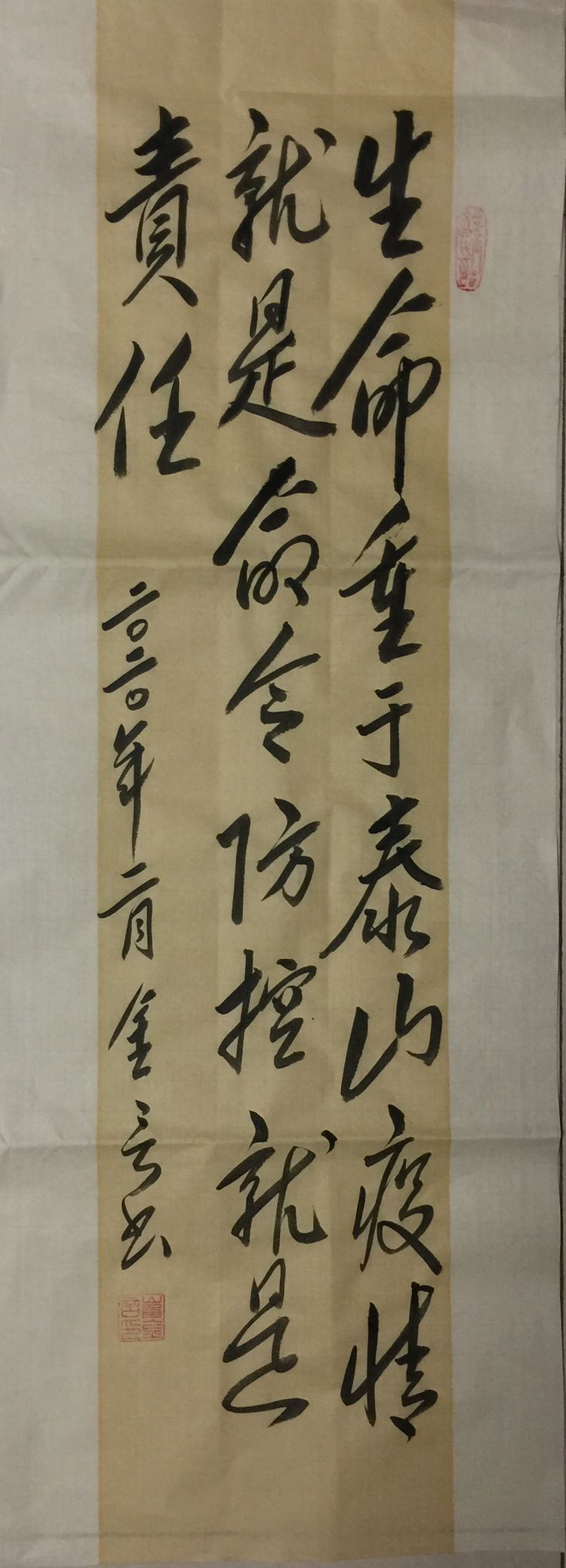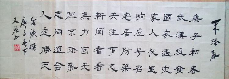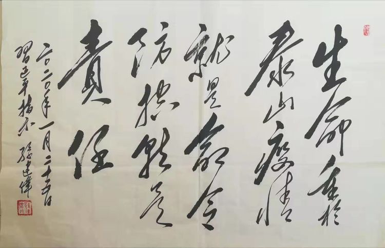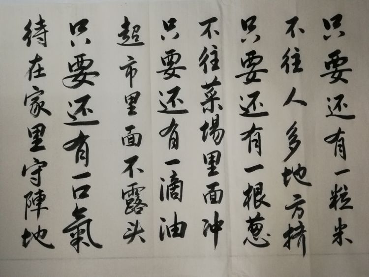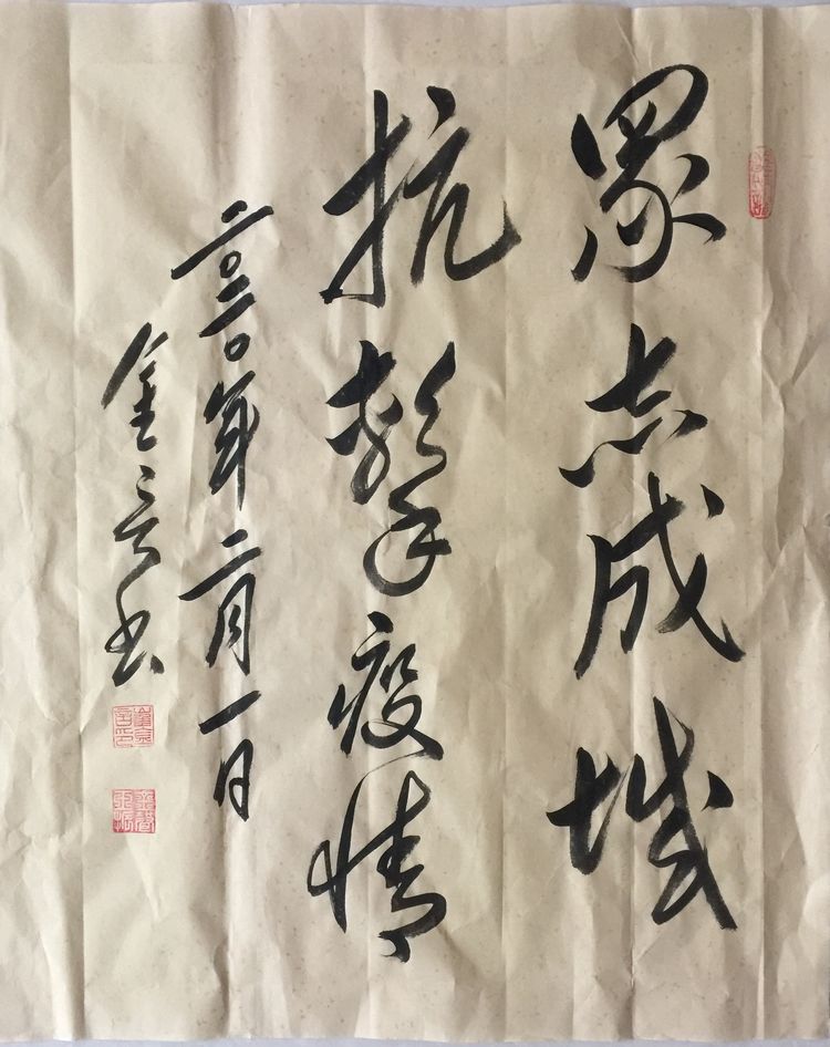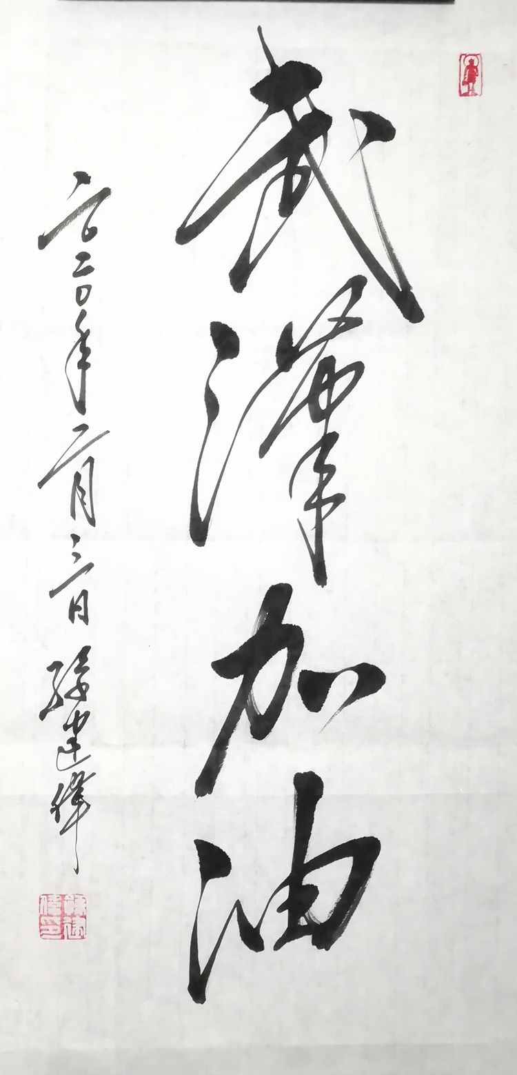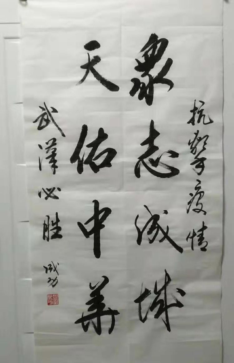 庚子岁首,突发的新型冠状病毒疫情肆虐,党中央高度重视。习近平总书记在中央政治局常务委员会会议上强调指出:“生命重于泰山,疫情就是命令,防控就是责任。”山东潍坊毛体协会会长、兴东书画院院长武法村同志于正月初三及时与名誉会长崔金言、副会长韩介国、孙建伟、李乐奎、刘玉清、齐小姣、王金豹等电话微信沟通。武会长号召鼓舞并要求两个组织的全体会员一定在国家这一危难关头,按照习主席的指示精神,与潍坊市政府密切配合,在家积极行动起来,以诗词、书法、绘画的形式为战斗在前线的勇士们加油打气,拿起自己手中的笔,进入一级响应状态,创作出优秀的作品在网络上展出,用文化艺术的武器开展防控疫情斗争。武法村会长还强调,大家一条心,不串门,不外出,不聚会,不给政府添乱,在家诗、书、画,就是对疫情的斗争,就是对前方白衣天使的支持,就是对政府的拥护,我们坚信,习主席亲自指挥的这场没有硝烟的战争,一定会打赢。一切终会过去,静候春暖花开!
