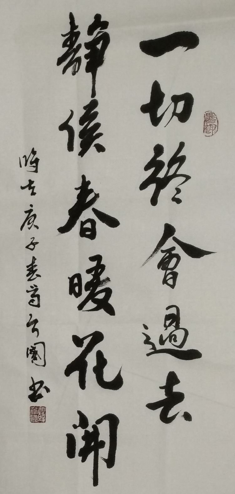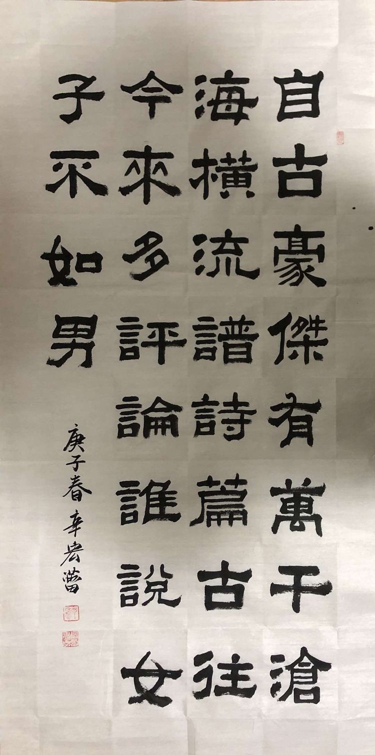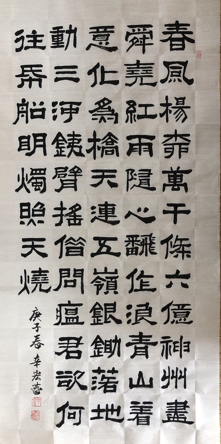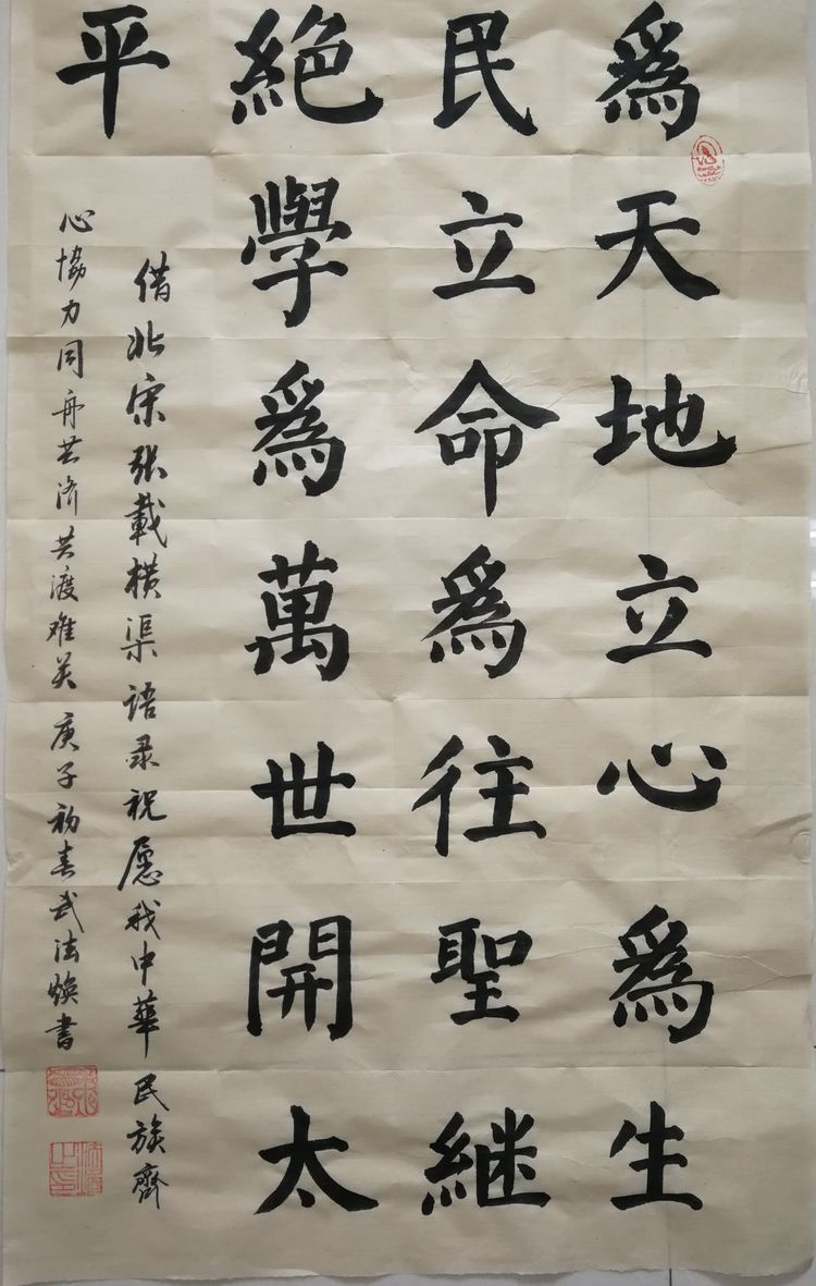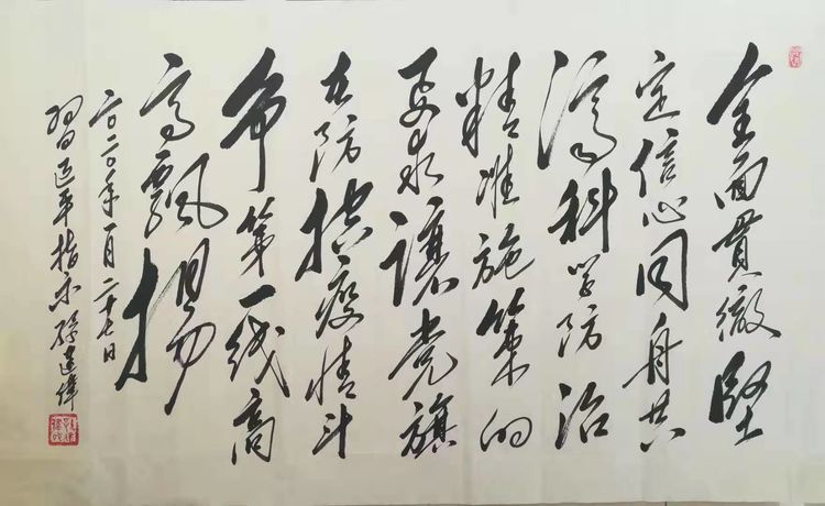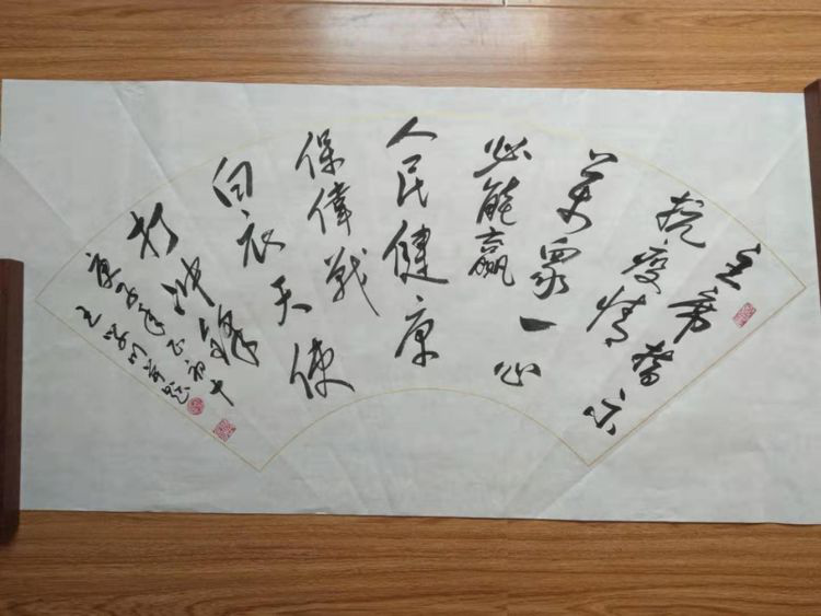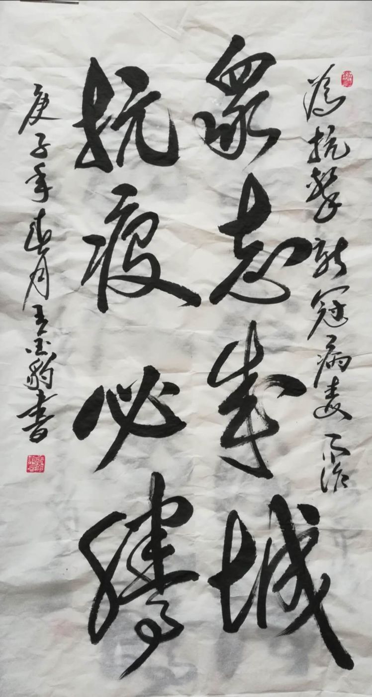 潍坊毛体协会副会长、潍坊兴东书画院副院长韩介国同志作品。韩介国表示:谨以此作品献给奋战在抗击疫情战线的将士们!祝英雄吉祥平安!