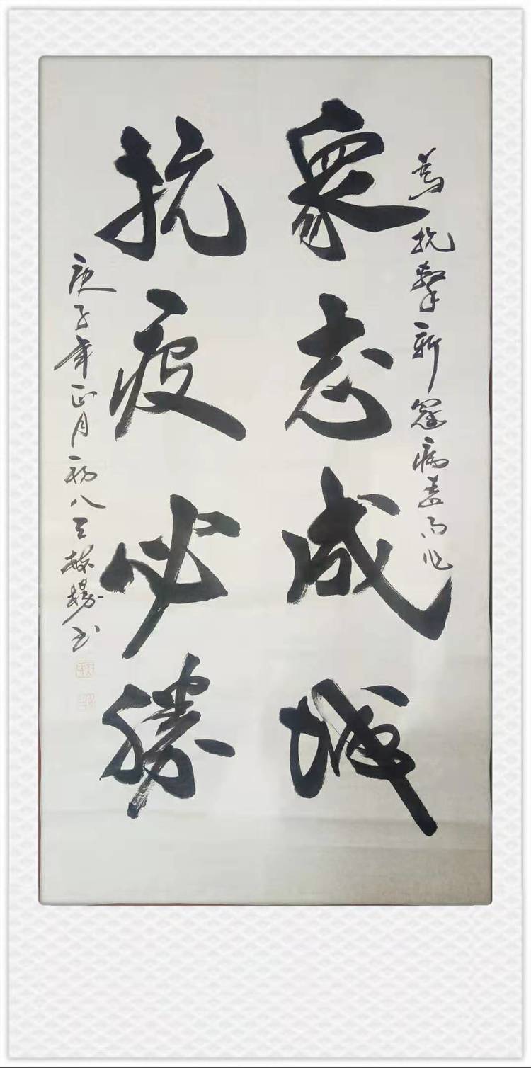 潍坊毛体协会寿光分会副会长、潍坊兴东书画院寿光分院副院长(寿光)丁春玲同志创作诗词一首以体现疫情面前的人间大爱。