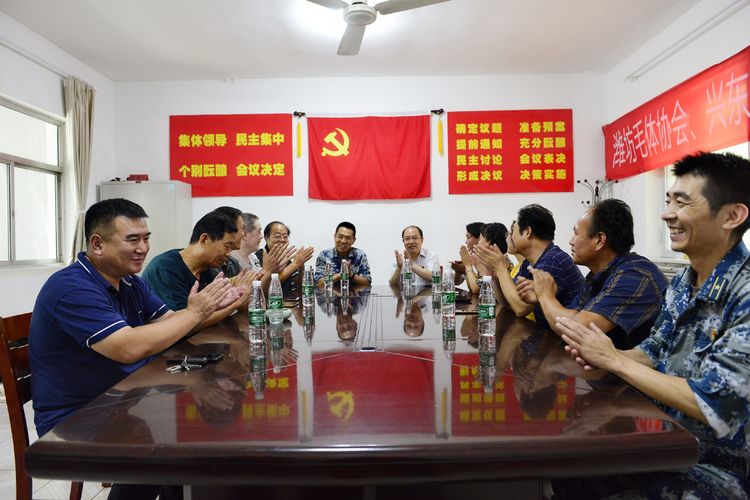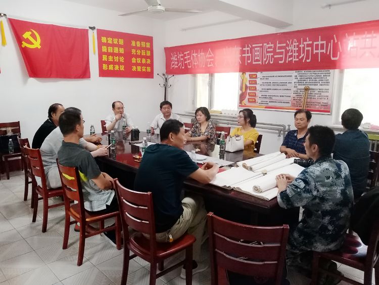 山东省潍坊毛泽东书法艺术研究会(以下简称:潍坊毛体协会)、潍坊兴东书画院、潍坊中心雷达站同庆“八•一建军节”座谈会、笔会记实。