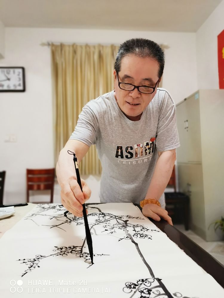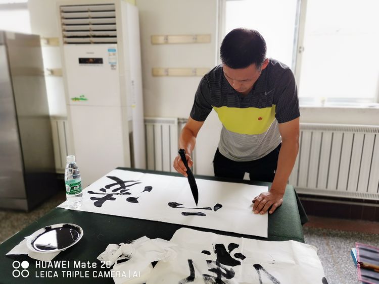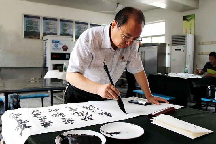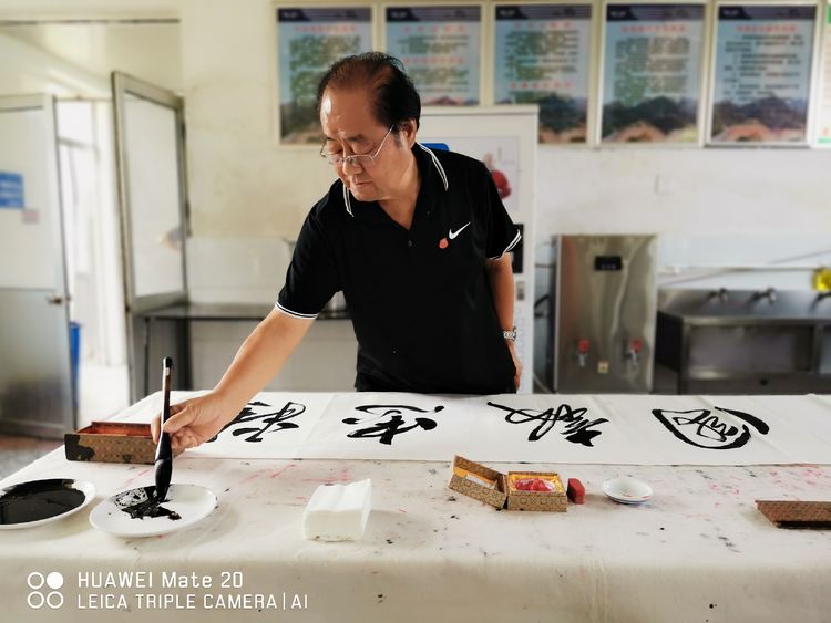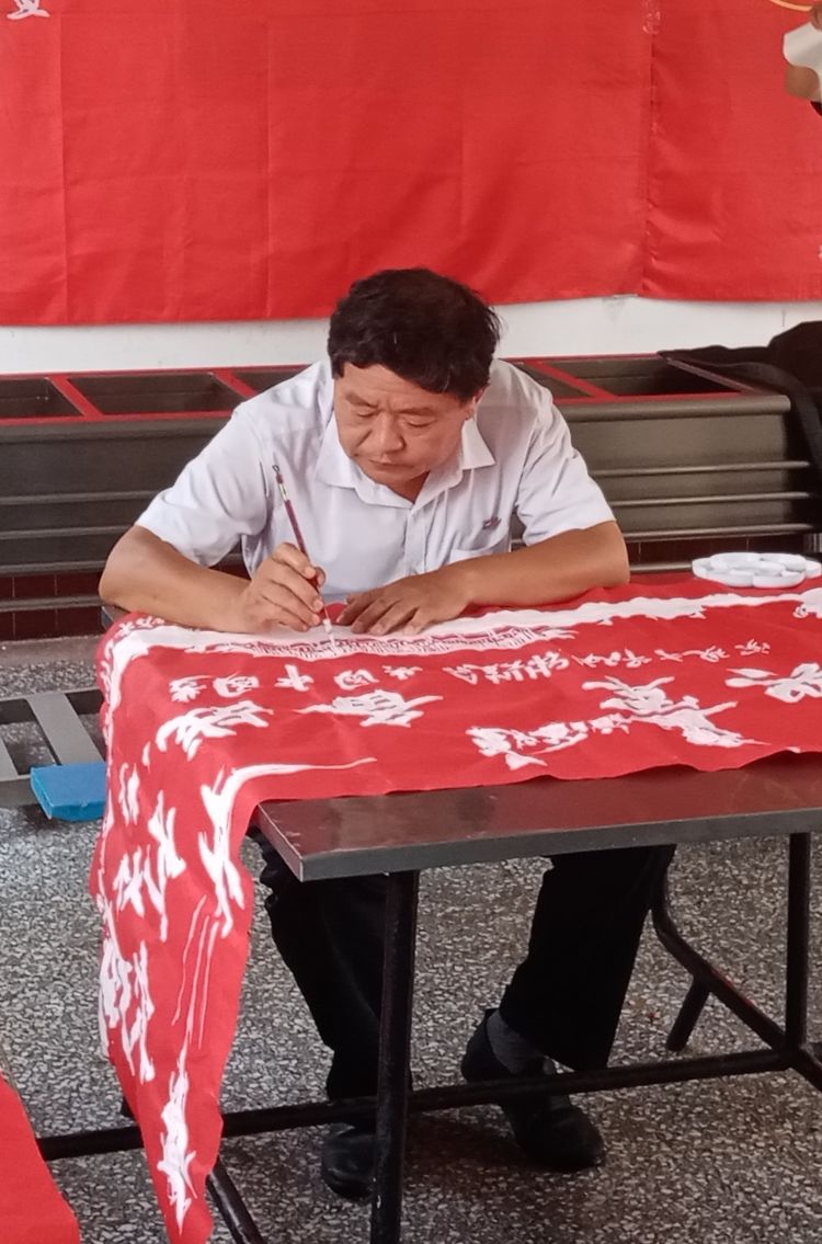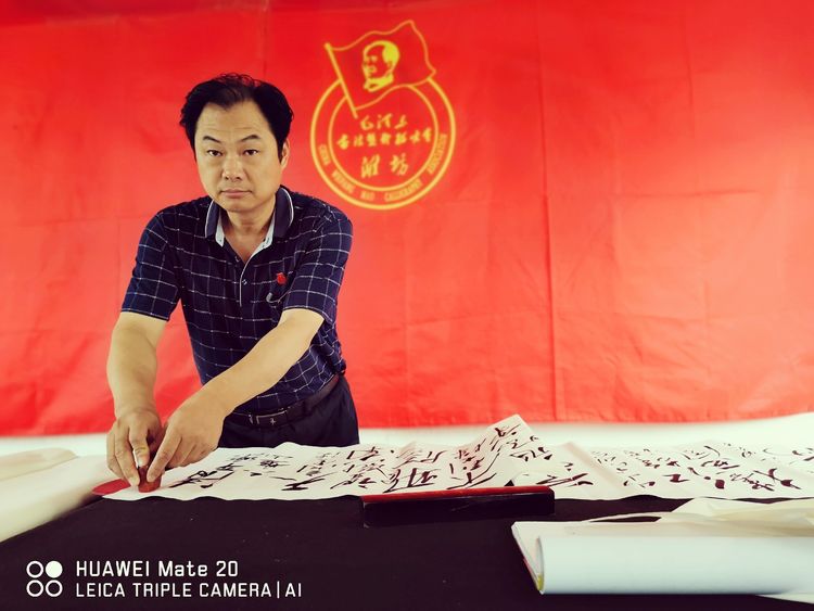 退役军人、中国毛体协会副会长、潍坊毛体协会会长、党支部书记、法人代表、潍坊兴东书画院院长武法村同志在创作作品