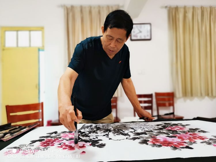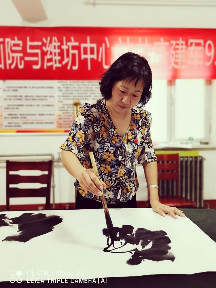 潍坊毛体协会常务理事、潍坊兴东书画院常务理事辛宏蕾同志在创作国画作品