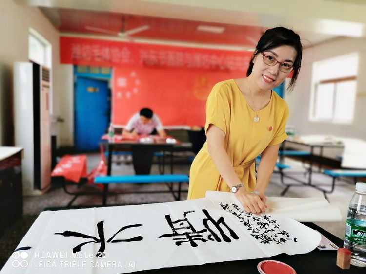 潍坊毛体协会副会长、潍坊兴东书画院副院长齐小姣同志在创作书法作品