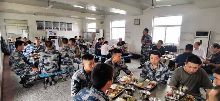 武法村会长在就餐前对在场的官兵介绍这次活动中到场的书画家们有四位曾经有过军旅生涯,表达了大家对部队官兵的深切慰问与敬意之情,同时为即将到来的“八一”建军节”送上深深的祝福!