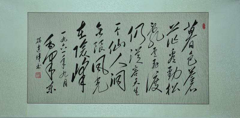 孙建伟,山东省潍坊市人,1970年6月生。自幼酷爱书法,以柳公权、颜真卿等楷书为基础,对王羲之《兰亭序》、怀素《自叙贴》等法贴的临习颇下功夫,至今潜心研习毛体书法二十多年,深得毛体书法之气韵豪放、形神兼备的艺术精髓。先后用毛体书法创作完成《三字经》《百字姓》《千字文》《道德经》等书法长卷及近百首毛泽东诗词及经典古诗词的书法作品。
