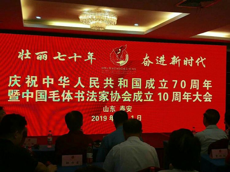 2019年9月1日上午,庆祝中华人民共和国成立70周年暨中国毛体书法家协会成立10周年大会在山东省泰安市万朝国际酒店胜利召开。