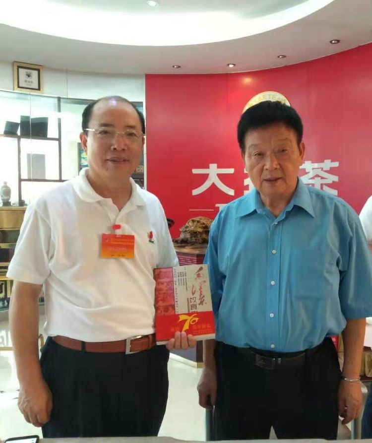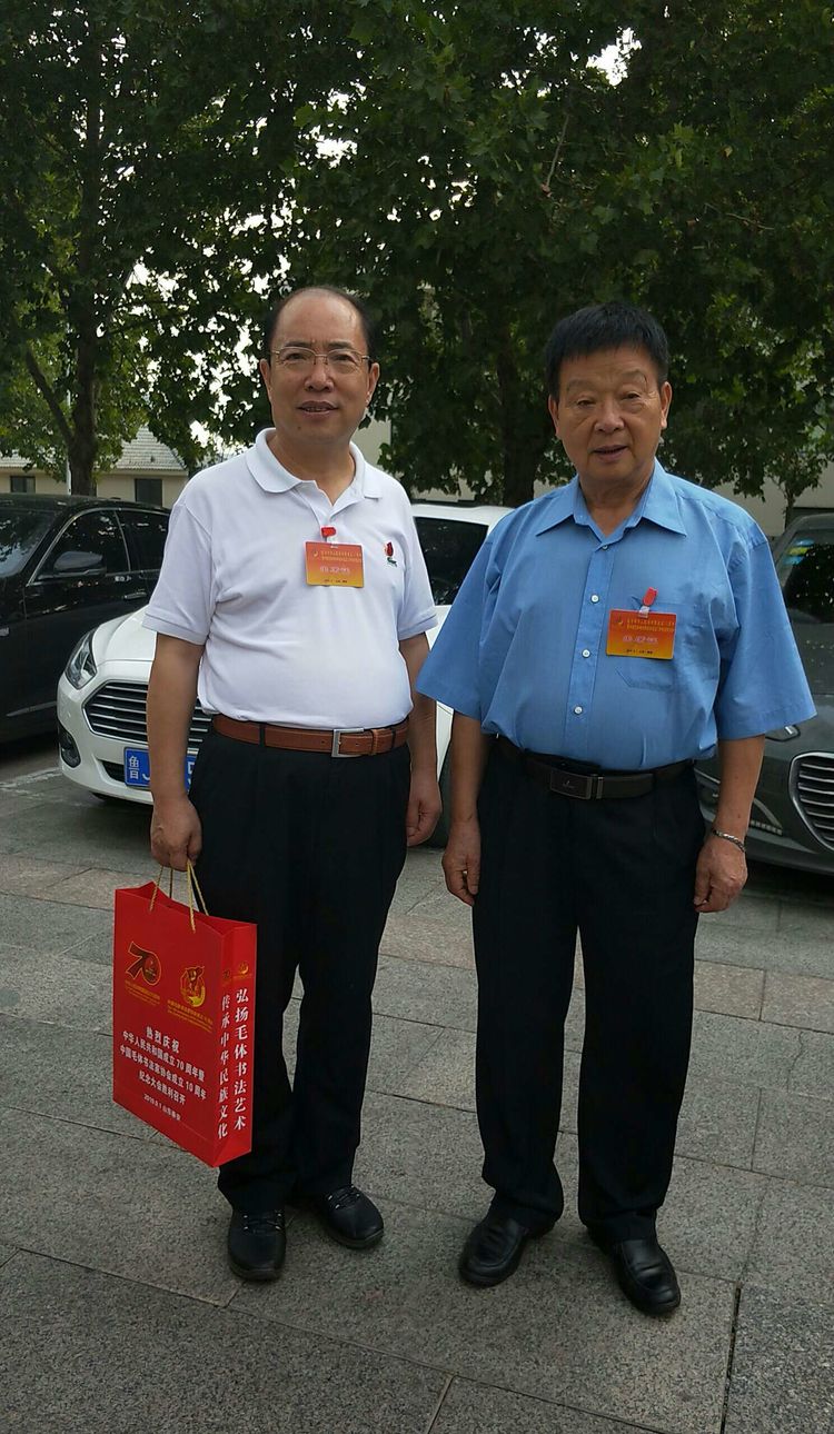中国毛体书法家协会副会长、潍坊毛体协会名誉会长崔金言同志与曾任毛主席12年的管家、生活秘书、中国毛体书法家协会会长吴连登先生合影留念